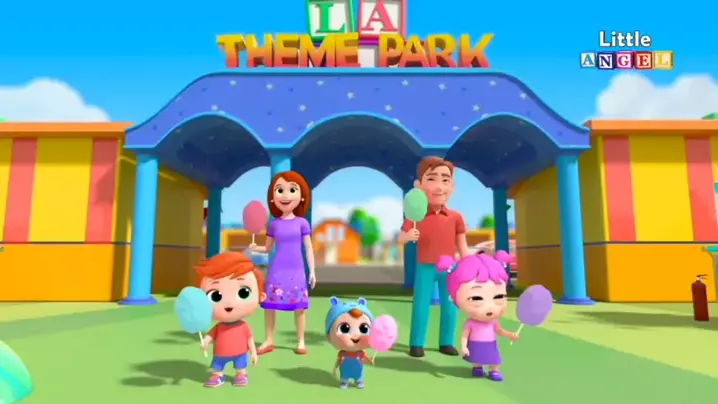 Satu keluarga datang ke taman hiburan dan ketiga bayi kecil itu sangat bahagia