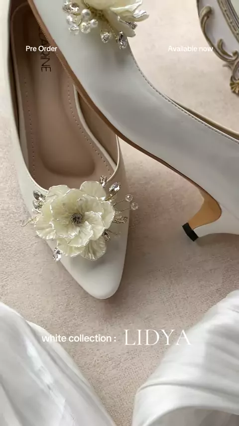 Koleksi spesial diwarna putih, wedding shoes dengan tinggi hak 5cm stiletto dan sentuhan bunga menjadikan looks dari shoes nya sempurna dan elegant😍💯 Buat para bride yang lagi cari inspirasi wedding shoes, ini rekomen banget sih💖 #weddingshoes #bridetobe #2026bride #customshoes #preorder