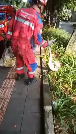 Ular sanca lagi nongkrong di pinggir Jalan Jalak Harupat Bogor #ular #ularsanca #bogor