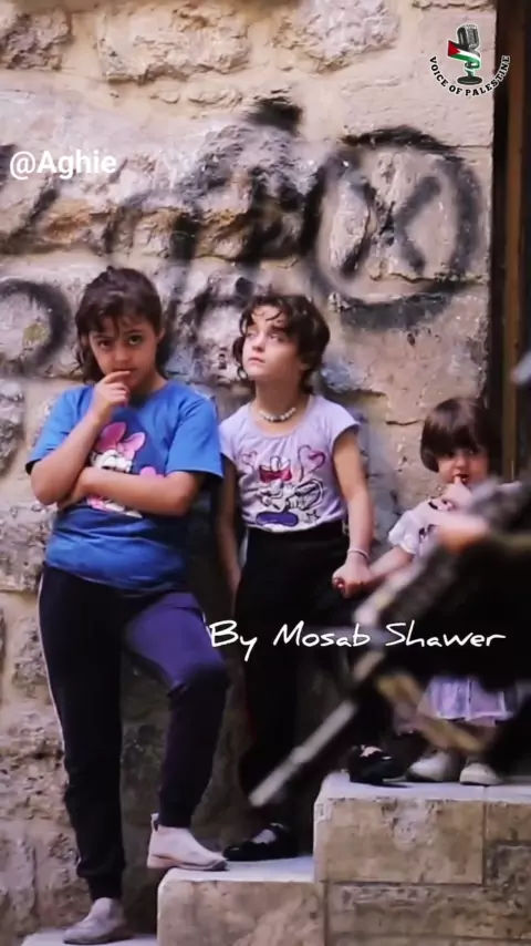Anak-anak Palestina berdiri di depan tentara Israel dan pemukim Israel bersenjata, saat mereka menyerbu Kota Tua di Hebron,di palestina tepi barat. Palestinian children in front of Israeli soldiers and armed settlers as they storm the Old City in central Hebron ุฃุทูุงู ุฃู