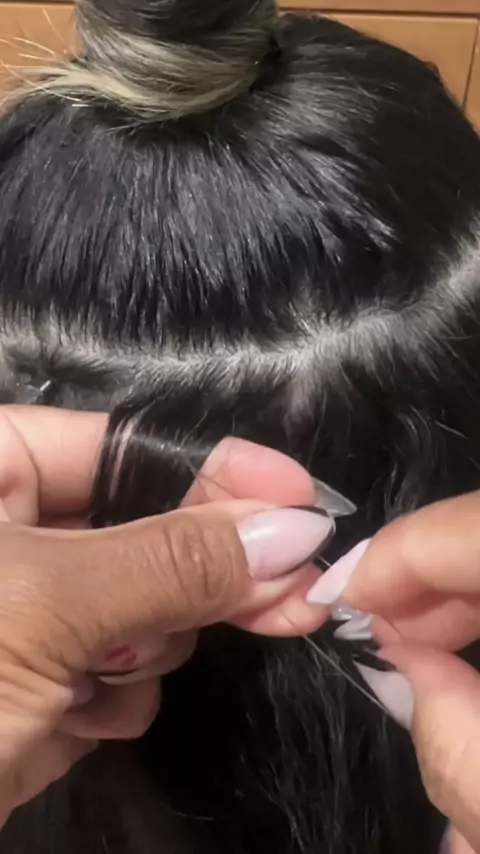 Preparando mecha do cabelo com microlink para aplicar tela de mega hair
