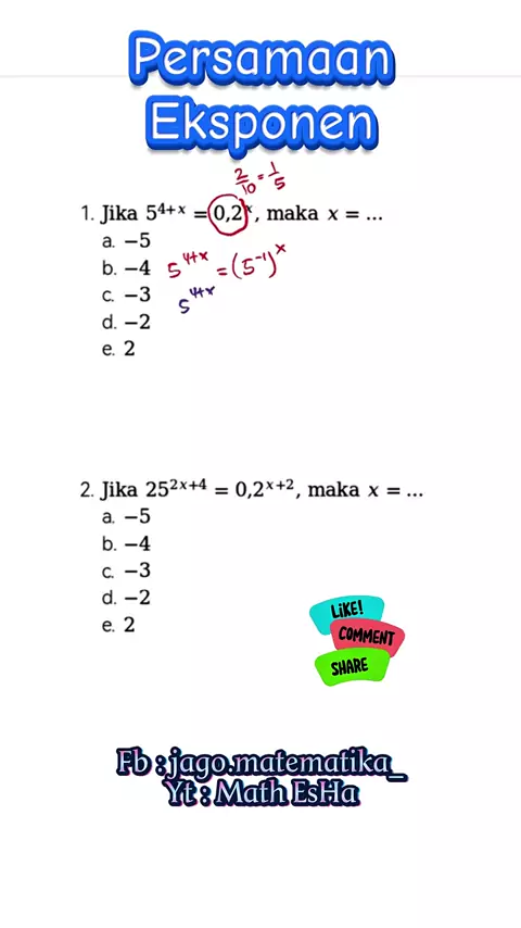 SOAL MATEMATIKA DASAR PERSAMAAN EKSPONEN TIU NUMERIK SKD CPNS KEDINASAN DAN PSIKOTES MASUK KERJA #jagomatematika #matematikadasar #maths #tiunumerik #tiuskdcpns #soalkedinasan #matematika #soalpolri #psikotest #psikotesbumn