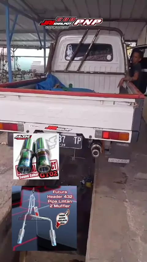 Futura injeksi header 432 pipa lilitan muffler AJN GT02 suara gahar mengglegar #knalpotracing #knalpotstereo #ajnexhaustmuffler #futurapickupindonesia #knalpotheader