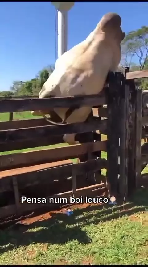 Boi bravo querendo pular a cancela.