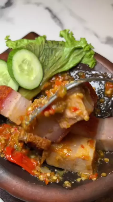 Pertama kali nemuin babi krispi dipakein sambal bakar, unik banget lagi. Bahkan menu ini lagi buy 1 get 1, gas sih karna cuma untuk 5 orang aja perharinya. #kulinerjakartabarat #kulinernonhalal #hoghock #FoodFeston #serunyakuliner