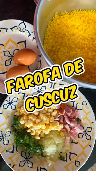 Farofa de cuscuz!! Prepare o cuscuz normal e reserve - 2 ovos, 100g de bacon, meia cebola ralada, meia cenoura ralada, 1 espiga de milho (opcional) cebolinha a gosto #cuscuz #farofadecuscuz