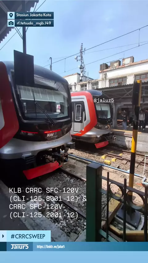 KAI Commuter kembali menguji coba KRL CRRC CLI-125 trainset 8, Selasa (22/7). Salah satu J5Friend menangkap momen KRL CRRC CLI-125.8001 dan CLI-125. 2001 (trainset 2) sedang stabling bersama di Stasiun Jakarta Kota, Jakarta Barat siang ini. Pic: @rf.tetsudo_mgb.149 #CRRCSweep #Jalur5