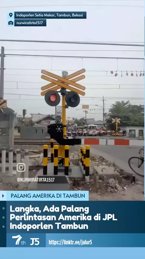 Perlintasan KA Indoporlen, Setia Mekar, Tambun, Bekasi menggunakan palang baru dari Siemens. Suara palang perlintasan ini seperti perlintasan kereta api di Amerika Serikat. Sirine tersebut jarang bisa ditemukan di perlintasan kereta api di Indonesia. Video: @nurwiratirta1517 #7TahunJalur5