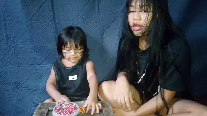 ela tá aprendendo fazer pulseiras