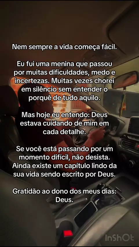 A vida nem sempre foi fácil para mim. Desde muito cedo aprendi que a vida exige força, paciência e fé. Hoje eu olho para trás e vejo que Deus sempre esteve cuidando de mim, mesmo nos momentos que eu não entendia. Gratidão ao dono dos meus dias: Deus. #Gratidão #FéEmDeus #DeusNoControle #HistóriaDeVida #NuncaDesista