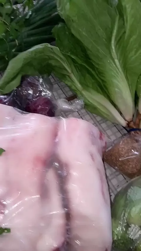 Hoje foi dia feira Comprei toucinho verduras