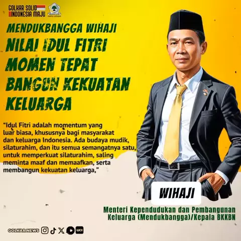 Mendukbangga Wihaji Nilai Idul Fitri Momen Tepat Bangun Kekuatan Keluarga https://golkarpedia.com/mendukbangga-wihaji-nilai-idul-fitri-momen-tepat-bangun-kekuatan-keluarga/ #partaigolkar #bahlillahadalia #golkarpedia #golkarindonesia #Wihaji