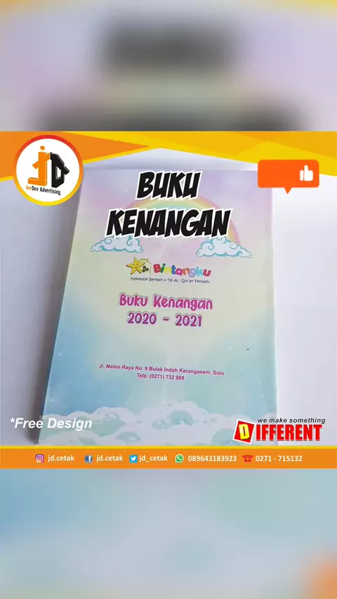 BUKU KENANGAN Mau bikin Buku Kenangan keren seperti ini? Ke #jeedeeaja .... bisa custom desainnya sesuai keinginan kamu. Kami juga melayani pembuatan sticker, map, kartu absen, amplop, nota penjualan, kartu stock, kalender, kardus roti, kardus nasi, id card, cetak kartu vaksin, dll. ⏬⏬⏬⏬⏬⏬⏬⏬⏬ Jeedee Advertising Jl. Mojo No.5 Karangasem Laweyan Surakarta Telp. 0271-715132 WA. 089643183923 Email : jeedee.advertising123@gmail.com #jdcetak #jeedeeaja #bikinnota #bikinkalender #bikinbuku #bikinam