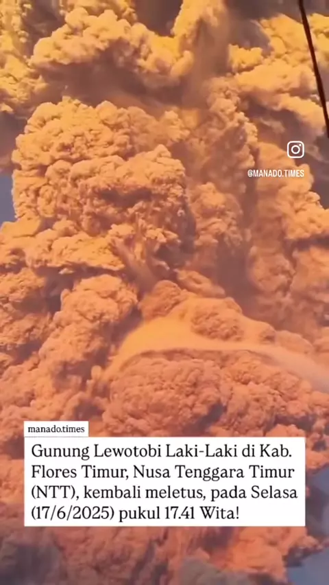 Gunung Lewotobi Laki-Laki di Kabupaten Flores Timur, Nusa Tenggara Timur (NTT), kembali meletus, Selasa (17/6/2025) pukul 17.41 Wita. Letusan dahsyat membuat suasana di desa lereng Gunung Lewotobi tampak gelap gulita sore tadi. Kepada Desa Pululera, Paulus Sanga Tukan, mengatakan warganya terjebak di desa karena hujan abu dan kerikil menerjang wilayah itu. Lyan, warga Desa Nurabelen yang kini berada di pengungsian Konga, Kecamatan Titehena, mengatakan letusan kali ini lebih dahsyat dari sebelum...
