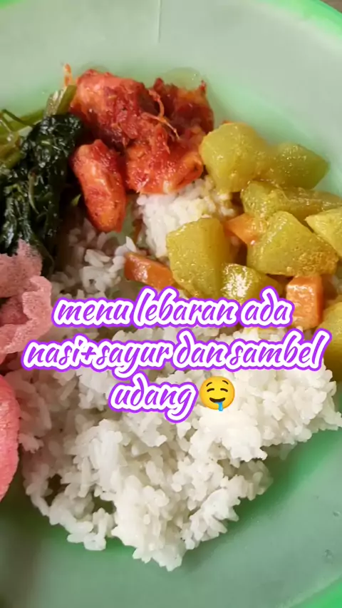 #SnackLebaran menu lebaran hari ini ada nasi+sayur dan sambel udang 🍀🀀 More