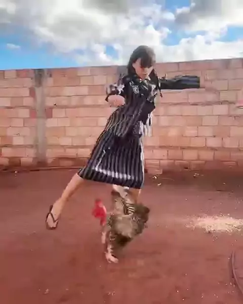 Wandinha lutando com o galo