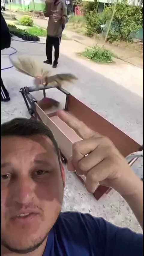 🧠 QUEM USA A CABEÇA TRABALHA MENOS! Esse cara criou um carrinho de mão com vassouras giratórias que varre e recolhe a sujeira ao mesmo tempo! Simples, prático e genial! Você usaria uma engenhoca dessas aí? #Curiosidades #Inovacao #TrabalhoInteligente #EngenhocaGenial #VarreduraAutomatica
