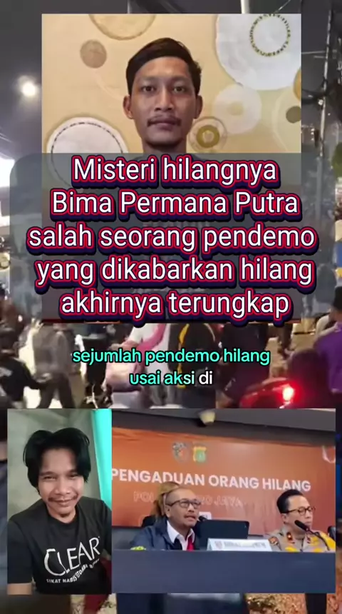 ‼️ VIRAL ‼️ Bima Permana Putra, pendemo yang sempat dilaporkan hilang usai aksi di Jakarta, akhirnya ditemukan. Ternyata Bima bukan diculik, melainkan pergi sendiri ke Malang untuk hidup mandiri. Ia sempat tinggal di hotel, lalu berjualan mainan barongsai di kawasan kelenteng Kota Lama Malang. 👉 Polisi menegaskan, hilangnya Bima bukan karena penahanan atau penculikan, tapi murni keinginan pribadi. Sementara 2 pendemo lain yang juga dilaporkan hilang, masih belum ditemukan. #BimaPermanaPutra #B...