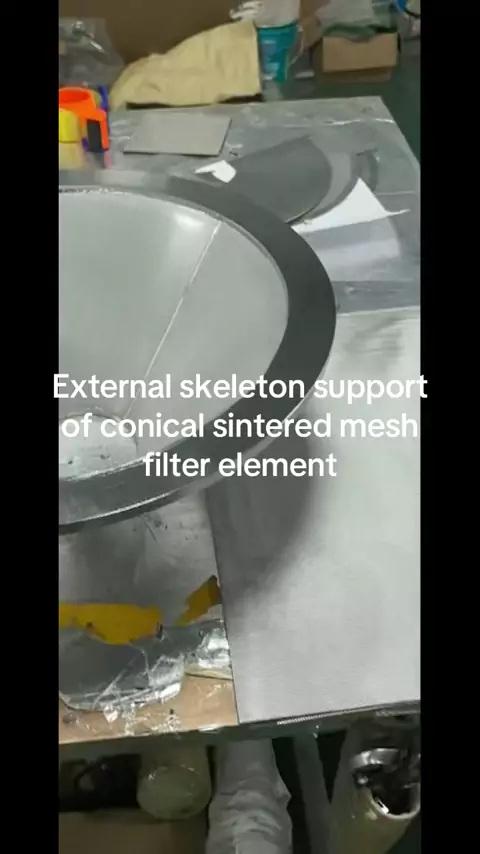 External skeleton support of conical sintered mesh filter element