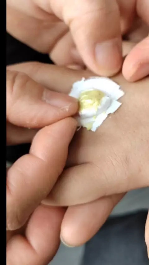 As mãos das crianças com verrugas comuns são removidas.