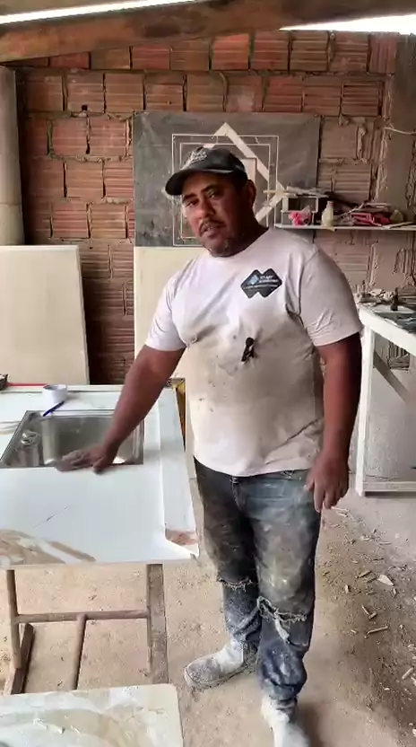 antes de cola prepara as peças #porcelanato #virareels #humor #fabricacaodebancadas