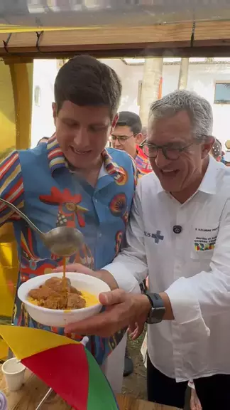 O Sábado de Zé Pereira começou com aquele café da manhã reforçado pra dar energia pro 🐔 Galo da Madrugada. 😋 E eu fiz questão de servir um bodinho com cuscuz pro nosso ministro da Sáude, Alexandre Padilha, pra que ele já entre no pique no maior bloco de Carnaval do mundo, que tinha que ser aqui no Recife, né não? 🎊