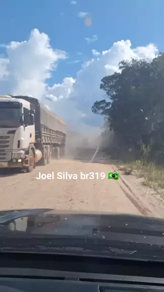 VÁRIAS CARRETAS NA BR-319 LEVANTANDO POEIRA.