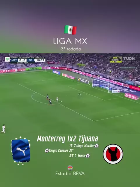 Monterrey 1x2 Tijuana - Pela 13ª rodada do Campeonato Mexicano, vitória dos visitantes. #ligamx #Futebol #gol #monterrey #tijuana