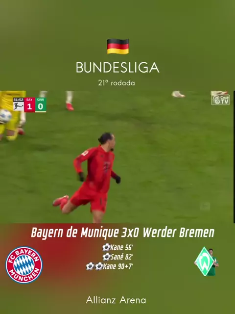 Bayern de Munique 3x0 Werder Bremen - Pela 21° rodada do Campeonato Alemão, vitória dos mandantes com 2 gols de Harry Kane. #Bundesliga #gol #Futebol #bayernmünchen #werderbremen