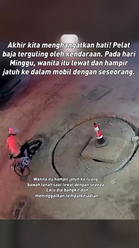 Akhirnya mengharukan! Pelat baja terguling oleh kendaraan. Wanita itu lewat dan hampir jatuh ke dalam lubang got.