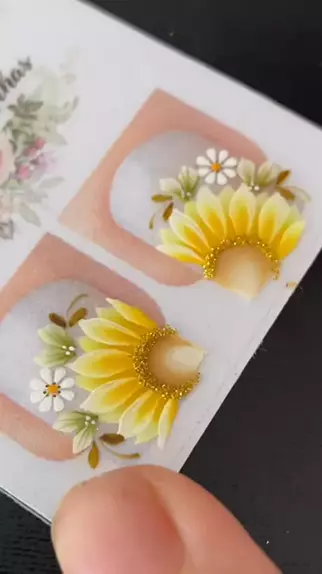 ADESIVOS DE UNHAS DE GIRASSOL 🌻😍 #Unhas #nails #manicure💅 #adesivosartesanais #fy