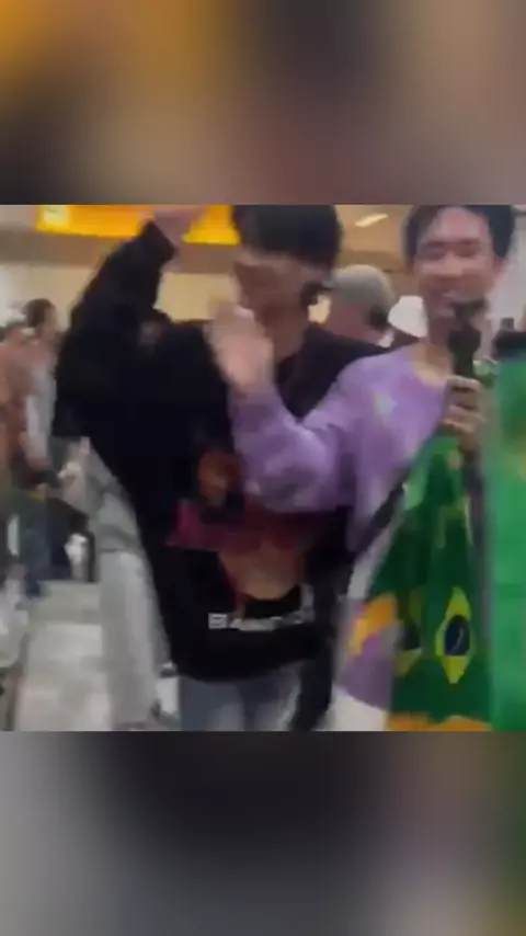 🥹 NewYear e Jurkung mega sorridentes desembarcando em São Paulo! #NewYearJur Os atores participam do evento gratuito ‘Ola BL&GL’ no sábado.