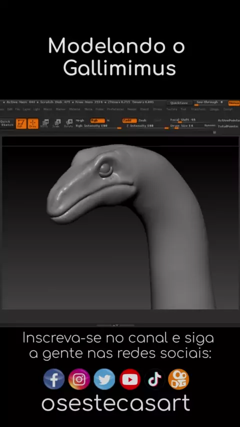 Modelando o gallimimus de Jurassic Park! Venha ver o vídeo completo no canal. (Link na bio) . #osestecas #jurassicpark #gallimimus #zbrush #jurassicworld