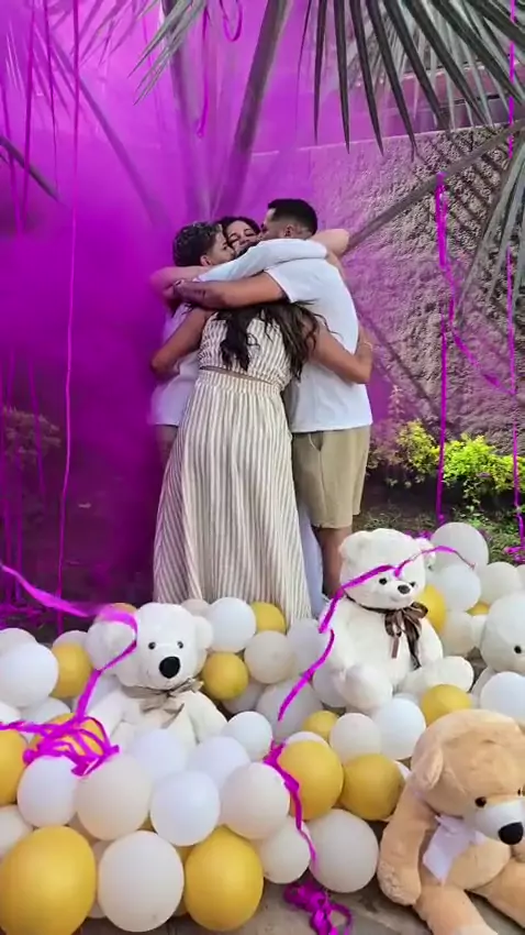 "🎥💖 Um arco-íris de amor chegou para colorir nossas vidas! 🌈❤️ Obrigada, Deus, por essa bênção incrível! 🙏 Ela é o presente mais lindo que poderíamos receber. 💕 #CháRevelação #BebêArcoÍris #Gratidão #AmorIncondicional 😊"