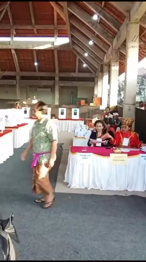 Suasana persiapan pencoblosan di TPS 006 Banjar Peninjoan, Desa Batuan, Kecamatan Sukawati, Gianyar, Bali, pagi ini sangat menarik. TPS ini menjadi percontohan karena seluruh anggota KPPS-nya dijabat oleh kaum perempuan. Hal yang memikat perhatian adalah para ibu petugas KPPS yang mengenakan busana adat Nusantara secara khusus.