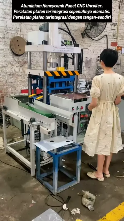 Aluminium Honeycomb Panel CNC Uncoiler. Peralatan plafon terintegrasi sepenuhnya otomatis. Peralatan plafon terintegrasi dengan tangan-sendiri