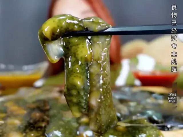 Suara diaktifkan makan sashimi teripang segar # sea cucumber