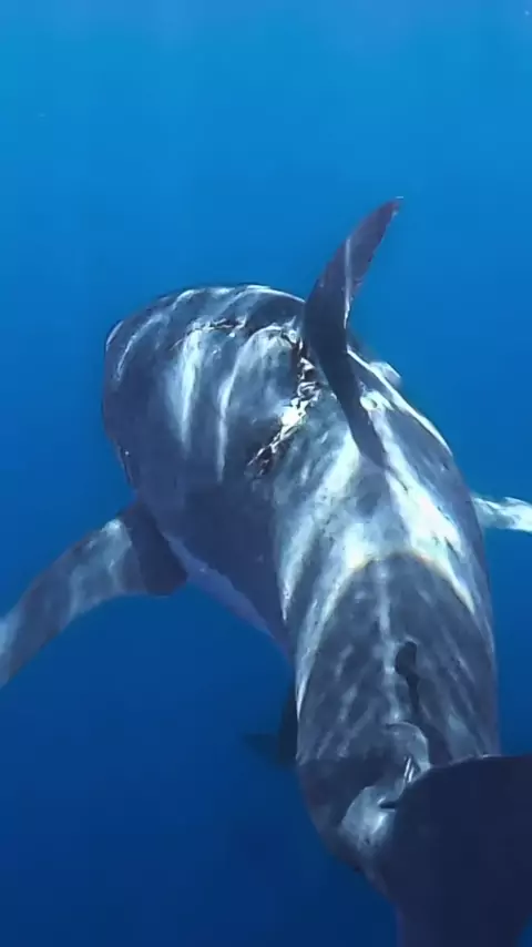Pinta uma marca de mordida gigante no enorme tubarão branco. # shark # whiteshark # greatwhiteshark # bite # jaws # ocean