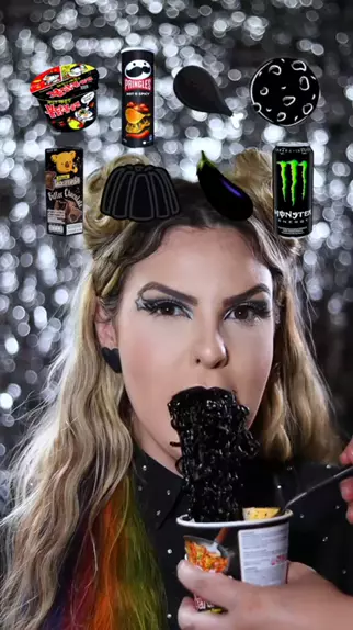 MUKBANG de comidinha PRETA 馃枻 qual a pr贸xima cor? #mukbang #mukbangasmr #mukbangvideo #blackmukbang