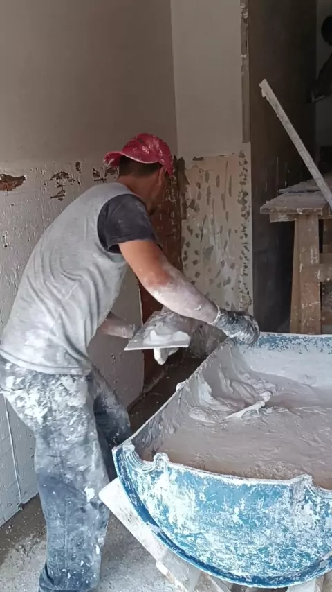 aplicando o gesso nas paredes