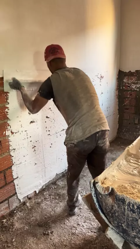 Gesseiro aplicando gesso em uma parede