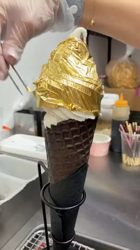 Sorvete de ouro 24k # icecream # partner # gostosdiferentes # halloween # halloweencountdown # halloweentreats # assustador # 24kgold # 24k # sobremesa # halloweendiy