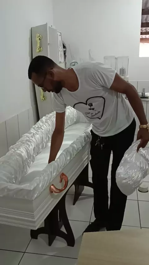 fazendo a limpeza da urna funerária antes do serviço