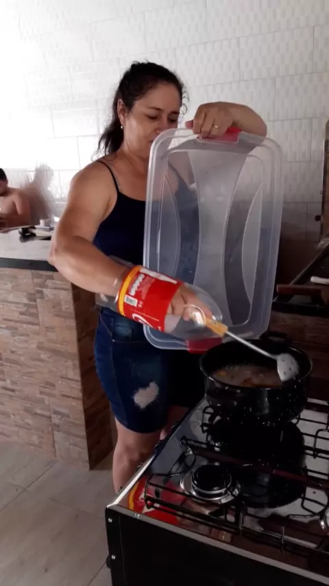 gladiadora fritando torresmo