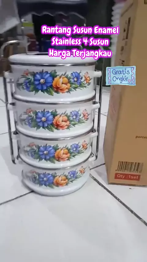 Rantang Susun Enamel Stainless 4 Susun Harga Terjangkau #ShopeeCOD #shopeefreeongkir #ShopeeLook #RacunShopee