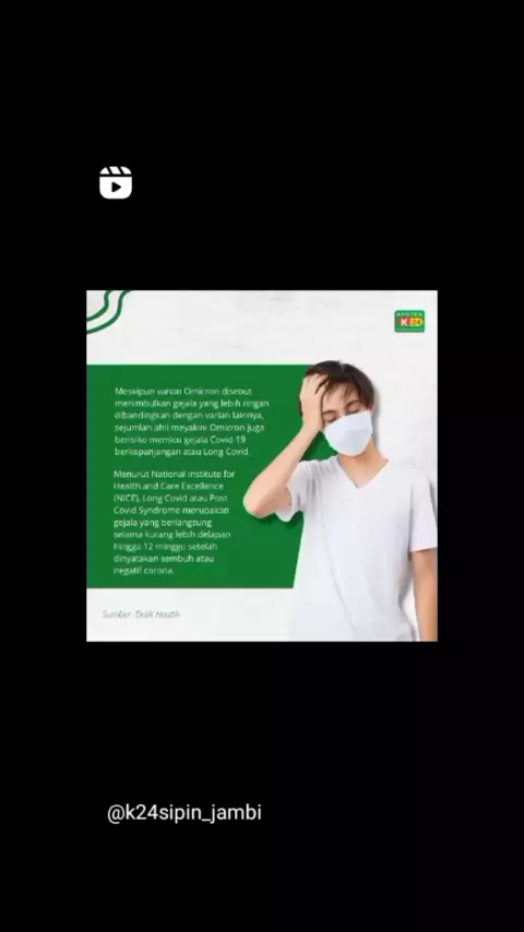 Udah negatif tapi kok masih berasa gejalanya ya?? Meskipun Omicron menimbulkan gejala yang lebih ringan jika dibandingkan dengan varian lainnya, rupanya varian ini berisiko memicu gejala Covid-19 berkepanjangan atau Long Covid. Swipe untuk melihat info lebih lanjut yaa! Sobat Sehat sedang mencari imun booster untuk mencegah long covid? Langsung cuss di-KIS aja! Klik tinyurl.com/k24isomanstore untuk mendapatkan berbagai obat untuk meredakan gejala covid & long covid. Mudah banget! #longcovid