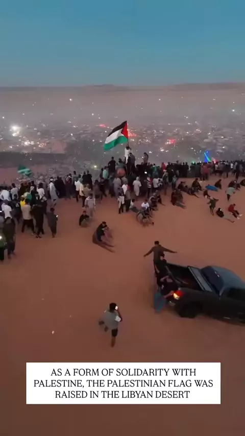 SEBAGAI BENTUK SOLIDARITAS TERHADAP PALESTINA, BENDERA PALESTINA DI KIBARKAN DI GURUN LIBYA #freepalestine🇵🇸❤️