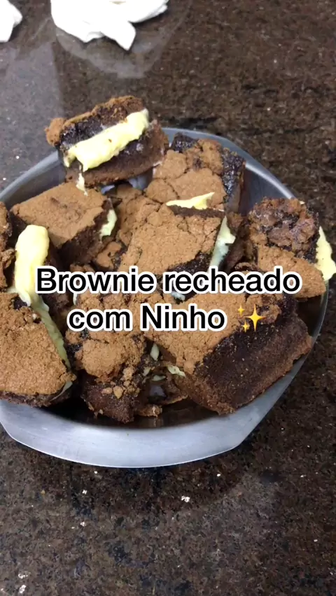 Receita super fácil de Brownie com recheio de Ninho! No meu insta você encontra todos os ingredientes (@karen_dornelles) Me conta se gostou! 💗#Receita #foryou