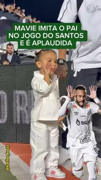 Mavie rouba a cena na vila Belmiro e é aplaudida pela torcida, ao imitar o pai fazendo careta. #mavie #neymar #neymarjr #santosfc #vilabelmiro