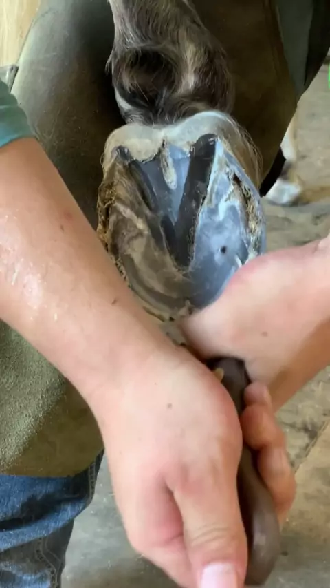 Kuku kuda patah, jadi diperbaiki dan memakai sepasang sepatu. Kuku anjing laut bayi. Memotong kuku kuku. dekompresi